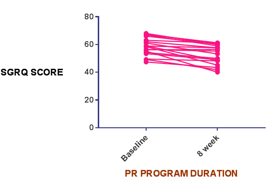 In the present study there was a statistically significant reduction in SGRQ score after PR program of 8 weeks.
