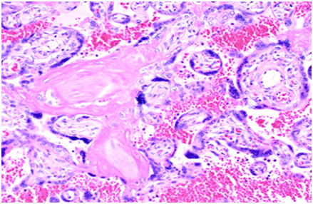 Grade 3 placenta and intervillous fibrin deposit
