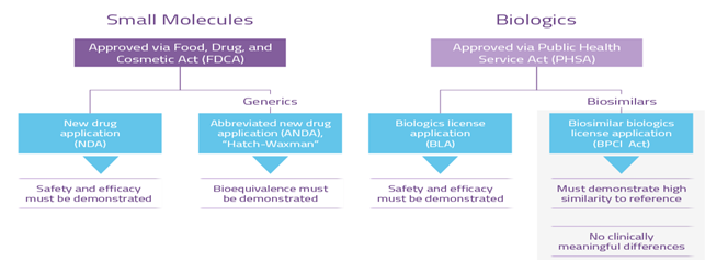 Biosimilar manufacturers must “demonstrate similarity of the drug’s efficacy and safety”.5 With approximately eighteen biosimilar products approved in Europe thus far, biosimilars are now becoming a treatment option in the United States. On March 23, 2010, the United States Congress enacted the Biologics Price Competition and Innovation Act (BPCIA) as a means to improve patient accessibility to innovative medical therapies.6 The BPCIA authorized the FDA to regulate biosimilar drug products acting as an amendment to the Public Health Service Act. This amendment created an abbreviated licensure pathway for biological products that are considered “biosimilar” to or “interchangeable” with FDA-licensed biological products.2 With this amendment, the FDA ensures that biosimilars will have no meaningful clinical differences, in terms of safety and efficacy, in comparison to the reference product5 although that does not mean the products will be identical and just like with reference drugs, patients may not respond to treatment as expected and require a different course of treatment.