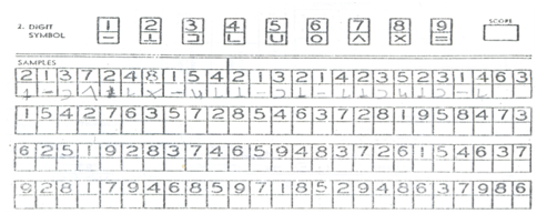 In NCT-A, subjects are asked to connect the circles from 1-25 which are design over the paper as quick as possible, although subjects are asked to connect numbers from 1 to14 and letters from A to L in alternating manner in NCT-B. Individuals are given a series of double-boxes, which contain numbers in the upper part. The task is to draw a symbol pertinent to this number into the lower part of the boxes in digital symbols test. Test result is the number of boxes correctly filled within 90seconds. In Block design Test, task is to take 6-9blocks that have all white sides, all red sides and red and white sides followed by arranging them according to a pattern formed by examiner or shown on a card (Figure 3).