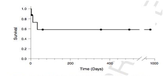 Of the total number of patients studied, 3 (37.5%) died during the post operative, between days 3 and 33. The causes of death were: 2 patients died from sepsis and the third one due to multiple organ failure in the context of global respiratory failure. It should be highlighted that the most frequent cause of mortality is the same as in non HPS transplanted patients. The patients that survived had a follow-up period ranging from 5 to 979 days until the trial was closed (Figure 1).