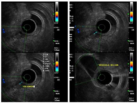 Figure 4 Endoscopic pancreatobiliary ultrasound showing a 5mm common bile duct without any other echographic abnormalities.