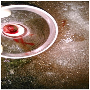 A total of 38 patients were recorded including 31 men for 7 women, a sex ratio of 4.42. The mean age was 43.7±12.2 years (range, 26–81 years). The symptoms were largely dominated by rectorrhagia (76.31%) resulting in a moderate anemia diagnosed in 21.05% (8 patients), severe anemia in 5.26% (2 patients) requiring a blood transfusion before ligation. There was also chronic constipation (68.42%) and proctalgia (44.73%). An antecedent of rubber band ligation failure was noted in one case; a notion of family history of undocumented hemorrhoidal disease was reported in 42.10% of cases (16 patients). The indication of the instrumental treatment by rubber band ligation of hemorrhoids was; in symptomatic internal hemorrhoids of grade III in 71.05% of cases (27 patients); grade II in 28.94% (11 patients). Biological assessment of homeostasis (TP, TCK, TS), full blood count with platelets, Rh grouping, irregular agglutinin (RAI) was performed in 89.47% of patients (34 cases). To obtain a clinical remission and achieve the therapeutic goal identified, we performed on average 1.95 session (1–2) of ligation. The average number of rubber bands per session was 2.79 bands (1–3). A notion of mild to moderate rectal pain was reported by 10 patients (26.31%) within 6 to 12 hours after ligation which was subsided by oral analgesic and anti-inflammatory drug. Rectorrhagia was noted in two patients (5.26%) between the tenth and fourteenth day post-ligation. Liquid diarrhea with minimal rectorrhagia was noted in 1 case on the tenth day post-ligation which was treated symptomatically. No macroscopically suspicious lesions in examinations requiring sampling were observed (especially in patients over 40 years of age). Total clinical satisfaction was reported in 97% of cases 6 months post-ligation follow-up. No recurrence was noted in post-rubber band ligation after 6 months of follow ups (Figure 1) (Figure 2).