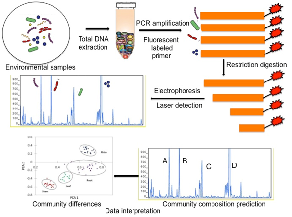 Figure 1 Illustration of molecular fingerprinting using terminal restriction fragment length polymorphism (TRFLP) analysis.