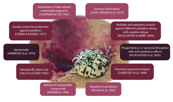 Figure 1 Chemical defense arsenal of the purple ink released by several sea hares.6-15