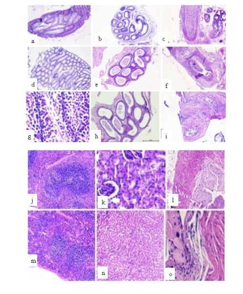 However, in striking contrast to this, the tissue histology for non-reproductive organs viz. spleen, kidney and bladder, revealed no abnormalities. All the organs were found to be histologically normal, both in the case of control (Figure 4j,4k,4l) as well as treated groups (Figure 4m,4n,4o). Consistent findings were reported by Reddy et al.,8 wherein they declared that no treatment related alterations in the structural integrity of the reproductive and non-reproductive organs after Nisin treatment were observed compared to their respective controls.