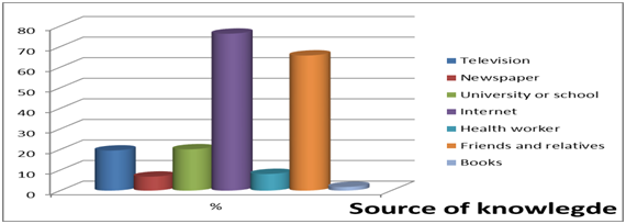 Generally, it was noticed in the present study that the knowledge about CL is deficient. Similarly, in a study done in Alexandria–Egypt, most of the respondents (90%) had not heard about leishmaniasis. On the contrarily, other studies in India, Nepal, and Bangladesh and Brazil showed much more better knowledge as almost all (98%) of respondents reported their awareness about Leishmaniasis.16‒20 This high awareness about CL in those regions, is probably because these are endemic areas; inhabitants of these areas had seen many cases of the disease, unlike our study as well as Alexandria study where leishmaniasis is not considered as much as common disease. As expected, the main source of information in the current work (Table 9), was the internet and social media (76.3%). The friends, relatives, health workers, university, schools, television and newspapers were less. Books as source of information were the least source (1.8%). These results are in consistent to the study conducted in many areas in the world.16‒19 These findings could be explained on the basis that there is a great effect internet and social media on public health. However, there is a well-known risks that the public get their information from the internet and social media, but there is a fact that it is the most common available and accessible source of information.
