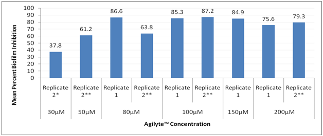 Table 1 Test Results for MRSA–Mean Percent Biofilm Inhibition in the Presence of Agilyte™