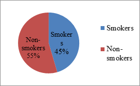 Individuals aged 18 years and above were enrolled for the study but for smokers, people who have been smoking tobacco products regularly for at least 1 year were enrolled for the study.