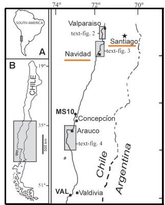 Figure 1 The location map of the different formations in Chile: Navidad and Arauco Formations (after Finger).1