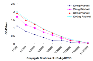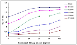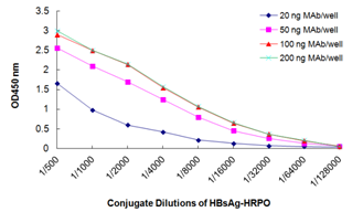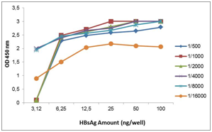 Figure 5 Determination of the optimal concentration of Anti-HBs 2G3-Biotin conjugates against HBs antigen by ELISA.