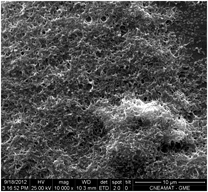 SEM analysis showed that Mycoplasma spp. adhered to the nitinol surfaces forming a biofilm in all the studied samples (Figure 1 & 2). No microbial growth was observed on uninoculated control surfaces (Figure 3). Given a 95% confidence interval for a binomial distribution, and a sample size of n=60, the lower confidence bound on the percentage of positive cases was 94.00%.