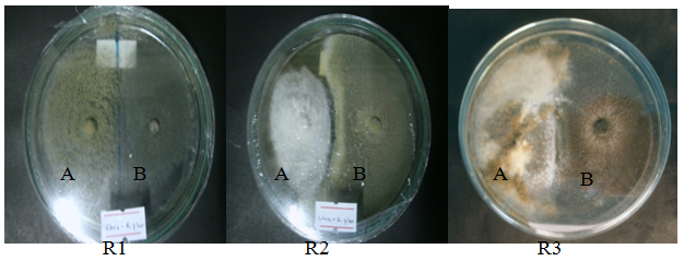 The experiment was laid out following Completely Randomized Design (CRD). The fugal interactions were qualitatively described and documented. Zones of inhibition were analyzed using Analysis of Variance (ANOVA) and compared using Duncan’s Multiple Range Test (DMRT) at 5% level of significance. Statistical Package for Social Sciences (SPSS) was used to analyze the data.