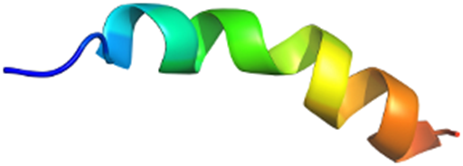 LL–37 is a member of the antimicrobial peptide class cathelcidins. Similar to the other peptides in this study, LL–37 is an amphipathic α–helical cationic peptide that kills pathogens by forming pores in membranes.47,48 LL–37 is a 37 amino acid peptide, and is the only peptide in this study to be isolated in humans. LL–37 is produced in bone marrow and is present in epithelial cells of the testis, skin, the gastrointestinal tract, the respiratory tract, and in leukocytes such as monocytes, neutrophils, T cells, and B cells.48–50 It has been found to have defensive roles such as regulating the inflammatory response; chemo–attracting cells of the adaptive immune system to wound or infection sites, binding and neutralizing lipopolysaccharides, and promoting wound closure.48,49 The exact mechanism by which LL–37 destabilizes the membrane is unknown, but studies have ruled out the barrel–stave mechanism, leaving either the carpet model or toroidal model (Figure 3B). Sambri et al.50 presented a comparison of LL–37 and four other cathelicidin–derived AMPs against three pathogenic species of spirochetes including Borrelia. LL–37 was less active than the other cathelicidin–derived AMPs. Although LL–37 has lower activity against spirochetes than both cecropin and magainin, it would not induce an immune response if added to current treatment regimens due to its origin in the human body. There is currently no data on the immunogenicity of cecropin or magainin, but the fact that these peptides are produced in non–human mammals increases the chances of an immune reaction if they were to be administered as treatment in vivo.