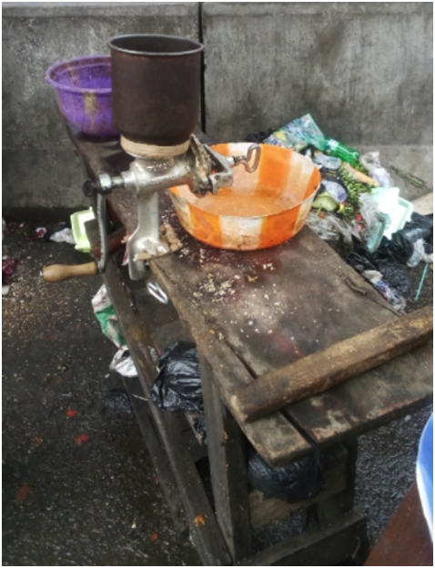 Markets are places where buying and selling of products takes place. In most markets found in developing countries, especially in the rural areas, it is probably believed that sanitation of the environment and the cleaning of the drainages are rarely carried out to discourage an outbreak of foodborne epidemics. The traders are probably concerned chiefly on how fast they could finish their products and maximize their profit than paying attention to environmental sanitation details. However, preliminary observatory investigation through weeks of daily monitoring of the level of hygiene outcome in the market by the researchers, revealed that cups used in the measurement of products such as rice, beans, melon and other seed-like products are not cleaned before and after use overtime, thus this would likely promote the presence and proliferation of microorganisms in these cups and measuring buckets, and subsequent transfer same to the products being measured. When these seed products are taken to be ground, the person concerned with this also, does not take out time to clean his machine before and after use, thus providing another good environment for the growth and possible colonization of new microorganisms different from those found in the seeds. Nonetheless, blenders are thus, machines (either electrically or manually operated) used to cut or crush substances (especially food and fruits) into smaller pieces. After blending, there are usually residues of the substance that are left on the blender machine. In most rural communities and markets, after blending, the researchers observed that the blenders are not washed. But are used over and over again, which often provides conducive media for the growth of microorganisms, possibly pathogenic ones to thrive. Nonetheless, such an unprofessional practice remains a massive promoter of an outbreak of foodborne epidemic, such as gastroenteritis and other seeming stomach disorders among unsuspected subjects, especially in rural settings, where access to the functional health system and availability of drugs has been a massive problem begging for attention over the years.1