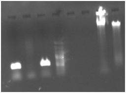 Figure 1 PCR of DNA extracted from bacteria isolated from Blood culture of patients . Primers F1 and R1 from gene specific to Yersinia pestis.