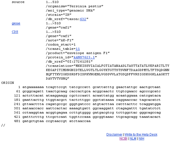 gi ׀ 48620 ׀ emb ׀ X61996.1 ׀ YPCAF Y. pe se is genes call, caf1M, caf _ _ _ |
