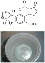 Based on previous experimental quantities, an unknown portion of aflatoxin B1 is placed in a sterile Class A 100mL volumetric flask. Distilled water is the matrix for carrying the aflatoxin powder in this experiment. Solvent or other carrier liquids from experimental experience would give unclear results and possibly be oxidized completely before the experiment was finished (Figure 3).