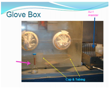 When I started this experiment, I thought the aflatoxin would dissolve in water easily. WRONG. To fix this problem, I placed the solution on a stir plate. There I withdrew the 2-10mL aliquots. These 2 samples are my initial start point samples. The remainder 80mL solution was placed in the glove box.