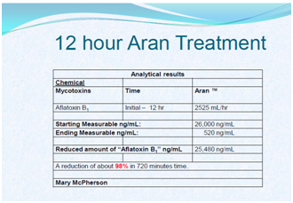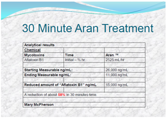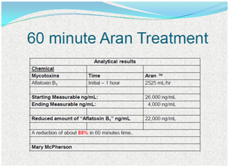 Citation: McPherson M (2015) Mycotoxin Testing with Aran Gas: Aflatoxin B1 Mycotoxin Destruction using Allotropic Oxygen O4, O5, and O6. J Microbiol Exp 2(6): 00068. DOI: 10.15406/jmen.2015.02.00068