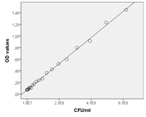 Correlation curve between OD values and CFU ml-1