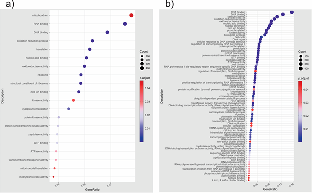Figure 3 GO enrichment based on differentially expressed transcripts from a) 15% NaCl vs b) 4% NaCl comparison in Aspergillus loretoensis.