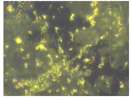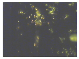 Figure 1 Adhesion of Map (ATCC 43015) to aluminium coupon analysed and photographed by fluorescent microscopy after incubation in PBS-T20 for 2 days at 37˚C, magnification x 1000.