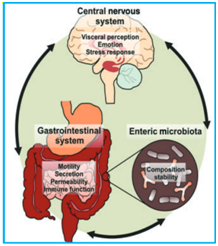 The gut-brain axis (GBA) is a two-way connection between the central nervous system (CNS) and the body's nervous system (ENS).8 It includes direct and indirect pathways between cognitive and emotional centers in the brain with peripheral intestinal functions. The GBA includes complex groups between the endocrine (hypothalamic-pituitary) axis, the immune system (cytokines and chemokines) and the autonomic nervous system (ANS).