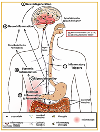 The association between Parkinson's10 and Irritable Bowel Syndrome (IBS) was caused by a combination of Villanella and Lactobacillus Human microbiologists were investigated.11 It is acknowledged that for gastrointestinal dysfunction function, presence Of clear anatomical or physiological abnormalities should be excluded and that other autonomic dysfunction and neurodegeneration Associated with Parkinson's disease (PD) can be characterized as such abnormalities. Recently there has been recognition An inflammatory component of the pathology of cerebral degeneration, mainly in Alzheimer's disease (AD), but also in Parkinson's patients (PD) and motor neuron disease (MND). The past decades have given opportunities to explore how and inflammation neurodegeneration in the central nervous system are related to each other, although we are still a way to gain a full understanding of the complex interactions that can occur.12 Gut microbiome13 is involved in obesity, for example.14 There develop different attitudes for the treatments and cure of neurodegenerative diseases like Parkinson's and Alzheimer's disease.15