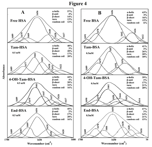 HSA, Human Serum Albumin; BSA, Bovine Serum Albumin; Tam, Tamoxifen; 4-OH-Tam, 4-Hydroxy Tamoxifen; End, Endoxifen; FTIR, Fourier TransformInfrared