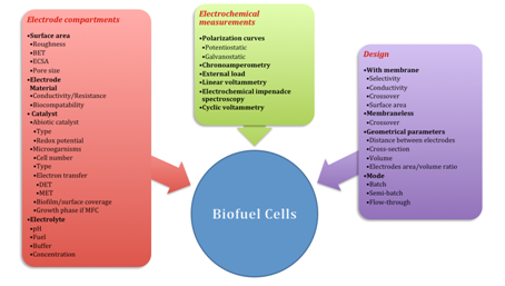 Once the biological interfacial reactions are enhanced and are no longer the rate-limiting step in the operation of biofuel cells, understanding of the design parameters and their influence becomes a primary question.23 Therefore, it is highly recommended to identify the key factors having the biggest impact on system operational features as well as system uncertainty. Unfortunately, due to the complexity of biofuel cells and mainly because of their interdisciplinary character, researchers consider the most important factors to be in the range of their knowledge and interests. Microbiologist and biochemists consider the biological component as determining BFCs operation. At the same time, engineers consider the design parameters as the most important once. Who is right?