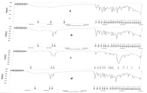 The drug excipients interaction studies were carried out by scanning A) Pure drug B) Drug + Glyceryl monostearate C) Drug + Tween 80 using FT-IR spectrophotometer (Bruker, α-E: ATR model, Germany) in the range of 4000-500 cm-1 and any incompatibility associated with the drug and excipients were studied.