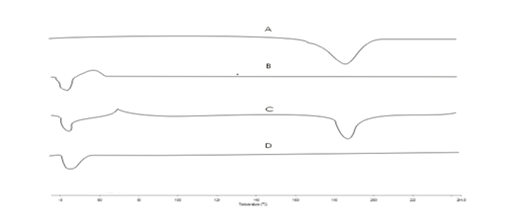The Differential Scanning Calorimetry was employed as tool to investigate the physico-chemical incompatibility between the drug and commonly used excipients which might affect the stability of the drug by chemical and physical interactions thus posing a threat to the stability or bioavailability. DSC was carried out using a DSC Q200 (TA instruments, US). A mass of 5 mg samples were accurately weighted, sealed in an aluminium pan and equilibrated at 25 _C, which were subjected to a heating run over the temperature range of 25–250oC, except for GMS whose we scanned up to 100oC only.