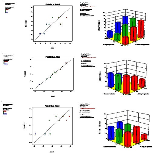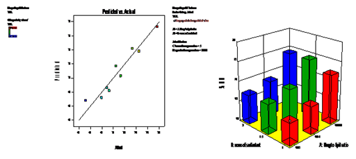 The optimize formulation was evaluated and the experimental values were compared to the predicted ones as illustrated in Figure 10. The summary of Anova results is presented in Table 2.