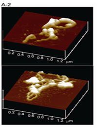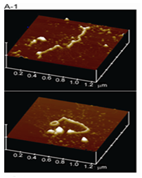 Figure 3(A1) Chromatin fibers were reconstituted from 186-kb plasmid DNA, core histones, and linker histone H1 and their structures were observed by AFM in air. H1-induced 30 nm fibres were detected.