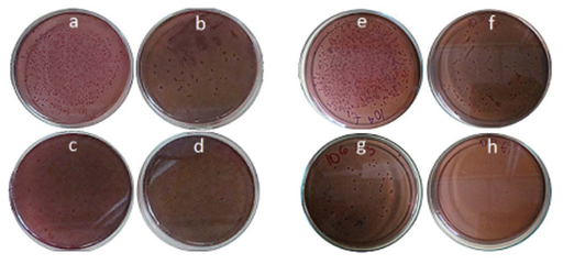 Efficiency of (AgNPs)GACs was analyzed using serial dilution technique in Petri dish. Tripticase Soy Agar (TSA) was used for inoculation of pure culture of Escherichia coli.