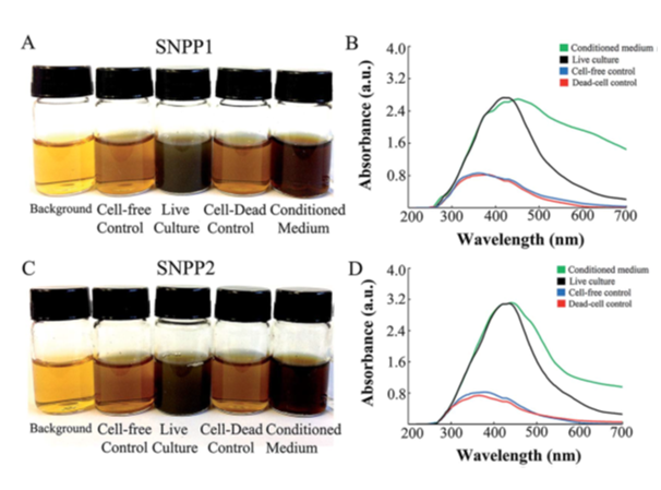 The authors of this paper have shown that formation of Ag/AgCl NPs by yeast isolates grown in the presence of AgNO3 was confirmed by an absorption in 350-450nm range in the UV-vis spectrum (Figures 1B & 1D). This is attributed to the excitation of surface plasmaon resonance in Ag NPs. However, it may not be due to AgCl resonance because the presence of AgCl is dubious. The change in colour cannot be taken as an evidence for the formation of AgCl NP because the absorbance observed at 410 and 415nm are due to Ag NPs.1,2 Generally, the absorption peaks noted in 400-465nm in UV-vis spectra have been attributed to the formation of AgNP in solutions.3,4 If the AgCl is formed even in traces, it would settle at the bottom of the container and slowly turn grey due to its exposure to sun light but not brown as has been observed by authors. However, AgCl is solid and its solubility in water is negligible because its solubility product is too low to furnish AgCl ions.