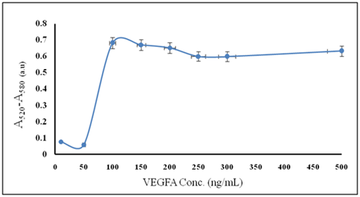 Figure 1A Effect of VEGFA concentration in form of absorbance intensity of the conjugate at (A520-A580).