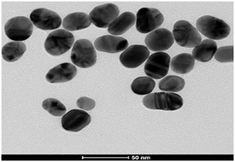 Synthesis of GNPs: Synthesis of gold nanoparticles (GNPs) was carried out by the reduction of Gold chloride hydrate by trisodium citrate according to Frens method as follow.21,22 In brief; 50 mL aqueous solution of 0.01 mM HAuCl4 in flask was heated until boiling with stirring. After that 1 mL of 1% trisodium citrate solution was added. The solution color turned from yellow to intrinsic bright red. The solution has been left to cool until reach room temperature with gentle stirring. GNPs were characterized by UV-Vis spectroscopy, particle size analyzer, High Resolution Transmission Electron Microscopy (HR-TEM), Fourier Transform Infrared Resonance (FTIR).