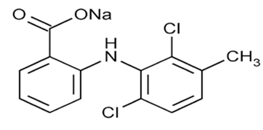 Nonsteroidal anti-inflammatory drugs, such as aspirin, sodium diclofenac, piroxicam, tenoxicam, ibuprofen and sodium meclofenamate are widely sold and consumed around the world due to their effectiveness, low prices and availability. 12-17 In particular, sodium meclofenamate (pKa = 4.39, soluble in water, ethanol, DMSO and DMF), is a very useful drug for the symptomatic treatment of moderate pain, several forms of arthritis, dysmenorrhea and menorrhagia (Figure 1).18 Moreover, it is currently being studied for its antitumor effects in murine models which may confer this drug a promising anti-neoplastic potential.19,20 Because of its increased risk of serious gastrointestinal events i.e. bleeding and ulceration, it is recommended to use the lowest effective dosage and shortest duration of therapy and to avoid its administration on empty stomach even when food decreases rate and extent of absorption.18 Based on this, a novel meclofenamate delivery approach may be useful.