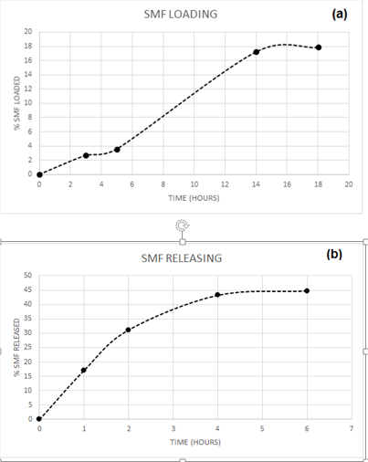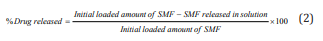 The percent of released SMF was calculated from the initial amount of SMF loaded into the MHNCs and the measured released-SMF in solution along the time, according with (equation 2):