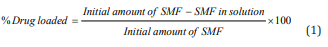 The percent of loaded drug was calculated from the amount of SMF adsorbed into the MHNCs with respect to the initially available SMF concentration (equation 1):