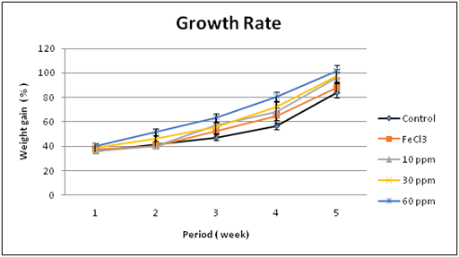 Figure 3 Effect of Nano iron fortified biscuits on growth rate of treated rats compared to the controls.