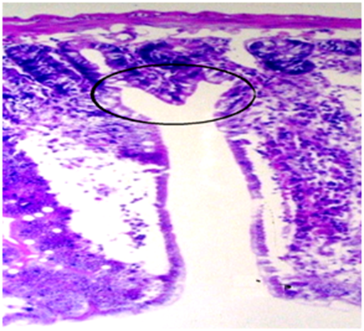 Figure 4 Histopathological examination of intestinal villi of nano iron nourished group showing induced villi branching.