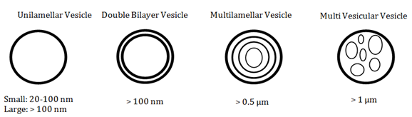 Figure 1 Types and typical sizes of different liposomes (*nm = nanometres, µm = micrometers; information based on 11.