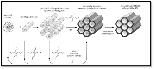 According to IUPAC nomenclature, mesoporous materials are those materials having a pore size ranging from 2 to 50nm in diameter.1-6 Mesoporous silica nanoparticles (MSNs) are promising and novel drug vehicles due to their unique mesoporous structure, which preserve a level of chemical stability, surface functionality and biocompatibility and ensure controlled release and targeted delivery of a variety of drug molecules. MSNs were discovered in 1992 by the Mobile Oil Corporation. They have received considerable attention due to their outstanding features, such as a high surface area, large pore volume, tunable pore diameter, narrow pore size distribution,7-15 easily modified surface,16 good biocompatibility and thermal stability.17
