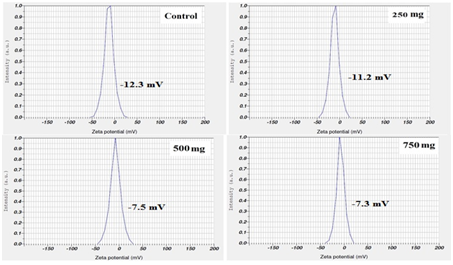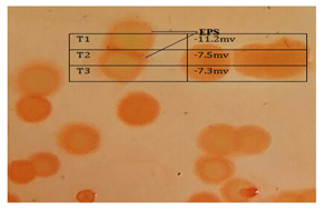 The stability of EPS was analyzed by Zeta potential which is high in the control when compare to treated EPS (Figure 10) & (Table 3). The value number of the zeta potential showed the stability of the EPS15 This analysis used to check the cell wall penetration of EPS and stability of the bacteria.