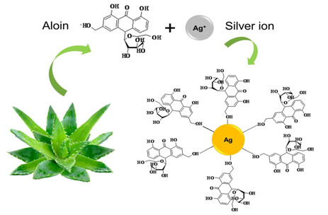 Figure 2 The capping of repellent compound Aloin from Alo vera on formed silver nano particles. This image retrieved from.34