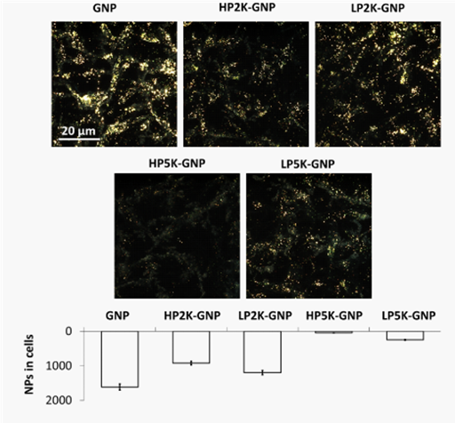 NP: Nanoparticle; GNP: Gold NP; HP2K-GNP: 1 PEG/nm2 2kDa PEG; LP2K-GNP: 1 PEG/2nm2 2kDa PEG; HP5K-GNP: 1 PEG/nm2 5kDa PEG; LP5K-GNP: 1 PEG/2nm2 5kDa PEG; UV-Vis: Ultraviolet-Visible Spectroscopy; DLS: Dynamic Light Scattering