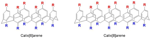 It should be noted here that derivatization of calix[n]arenes by changing the functionality on the lower rim, especially by attaching pendant groups or the joining of two calix[n]arene units together, and their use in delivery of molecules of pharmaceutical relevance has been reported.36 Such lower rim-functionalized molecules can form complexes with other species, with metal ions in the development of sensors for example, but have not received the same attention for drug solubilization.